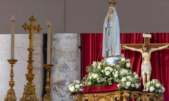 La Virgen de Fátima, junto al altar. | Crédito: Daniel Ibañez/ EWTN News.